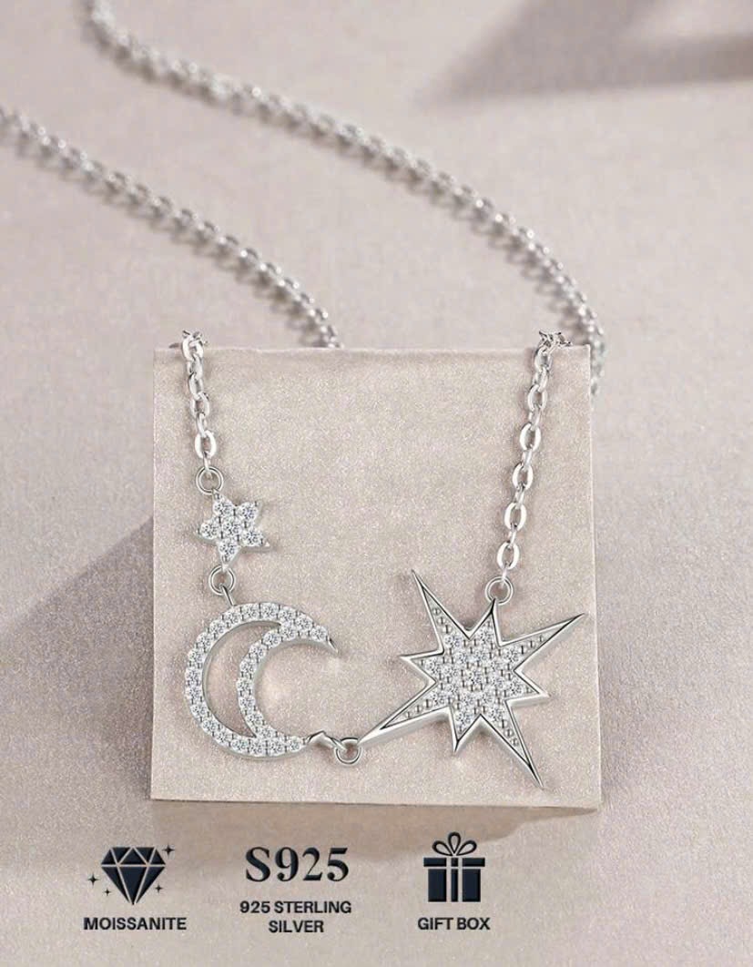 - Dây chuyền Bạc 925 kim cương Mossanite 0,1 cm * 34 viên; 0,15cm * 15 viên sáng đẹp thời trang.