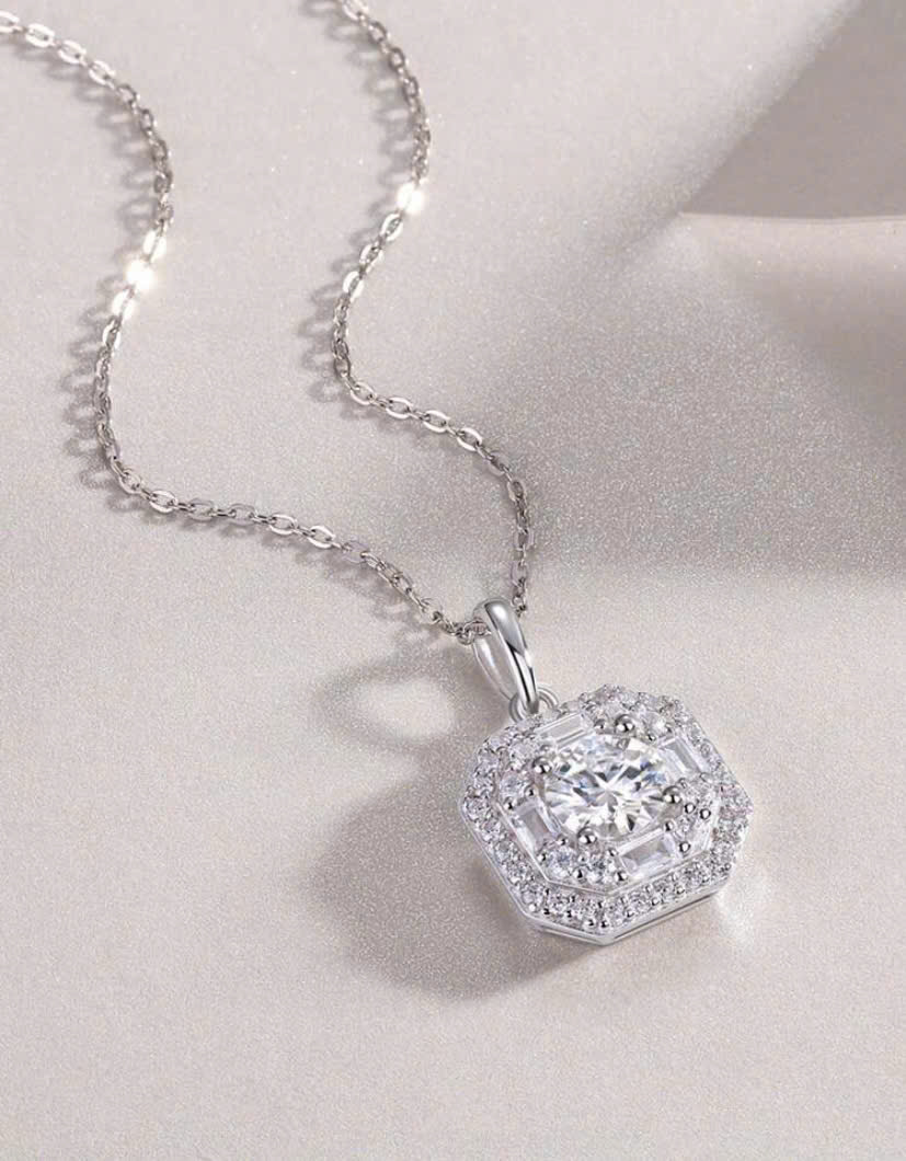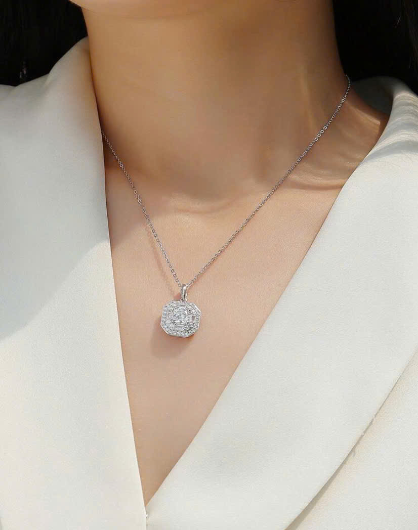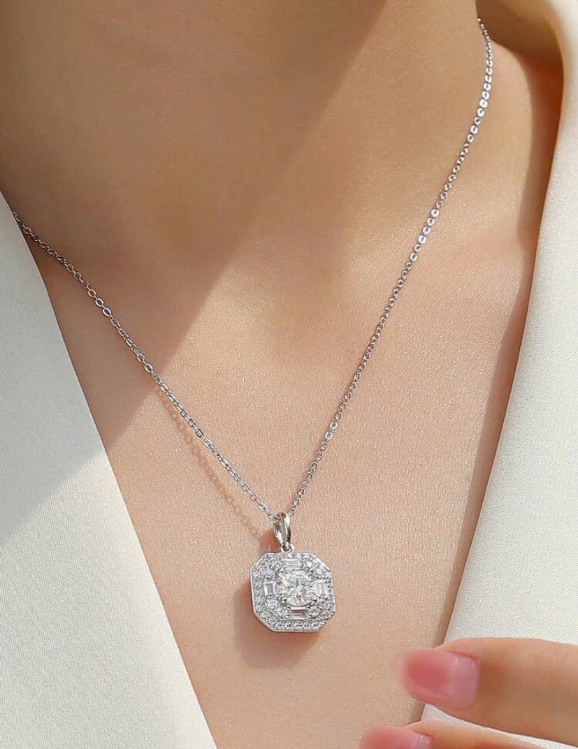 Dây chuyền và mặt kim cương Moissanite