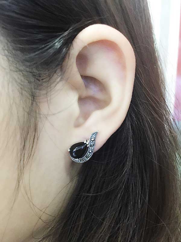 Khuyên tai bạc đá đen Onyx tự nhiên ER-1469
