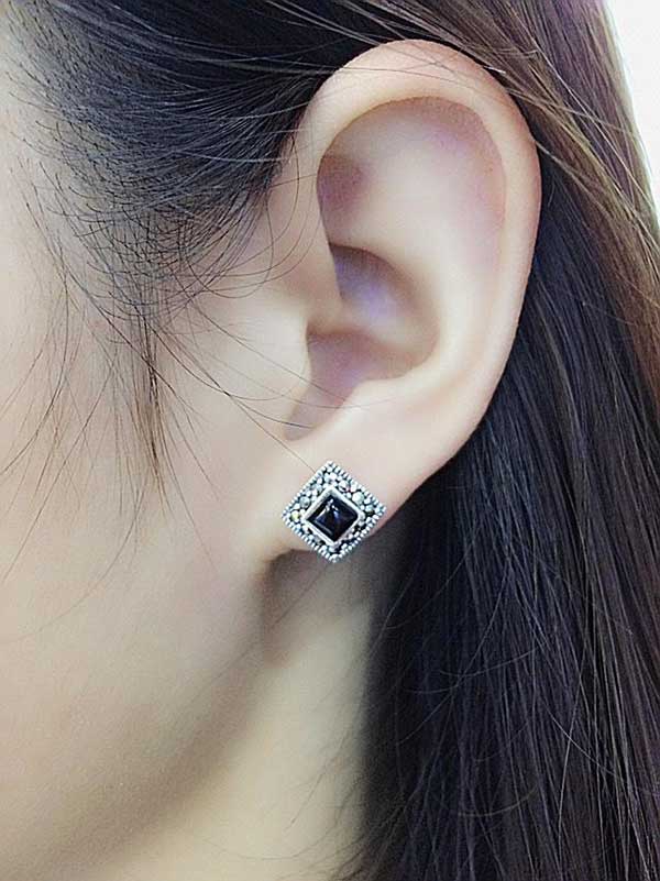 Khuyên tai bạc đá đen Onyx tự nhiên ER-1469