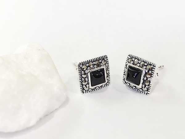 Khuyên tai bạc đá đen Onyx tự nhiên ER-1475
