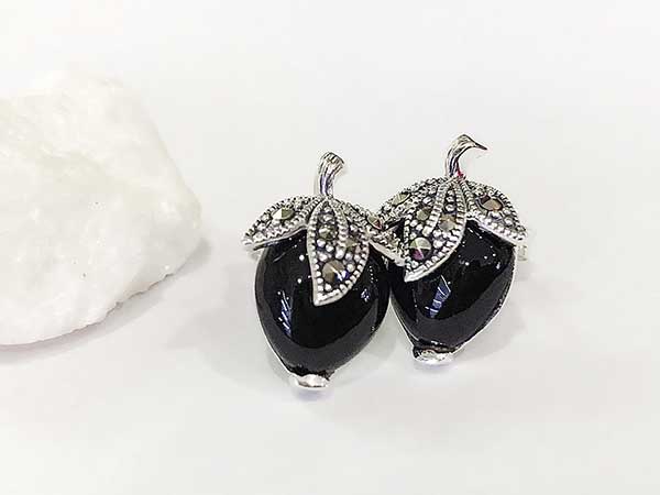 Khuyên tai bạc đá đen Onyx tự nhiên ER-1467