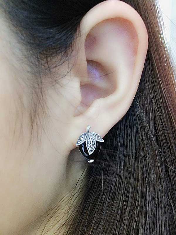 Khuyên tai bạc đá đen Onyx tự nhiên ER-1473