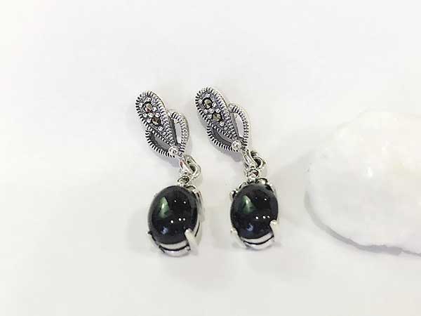 Khuyên tai bạc đá đen Onyx tự nhiên ER-1469