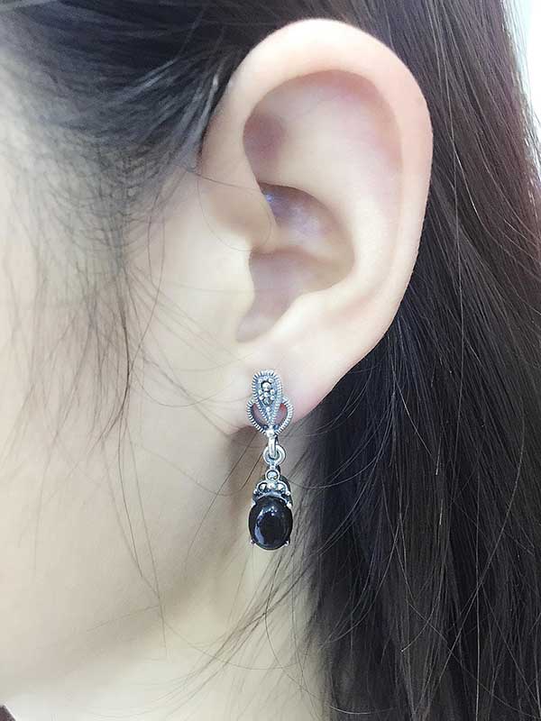 Khuyên tai bạc đá đen Onyx tự nhiên ER-1475