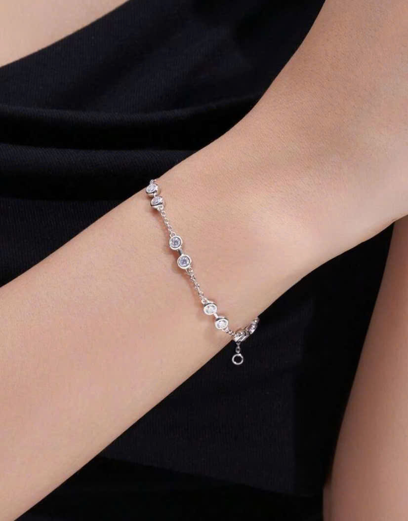 - Lắc tay Bạc 925 kim cương Mossanite size 3mm - 14 viên sáng đẹp thời trang.