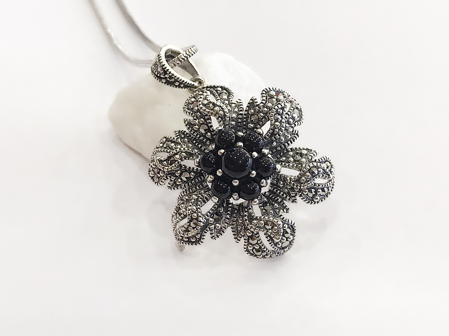 Mặt dây chuyền bạc Thái gắn đá Onyx PD-3183