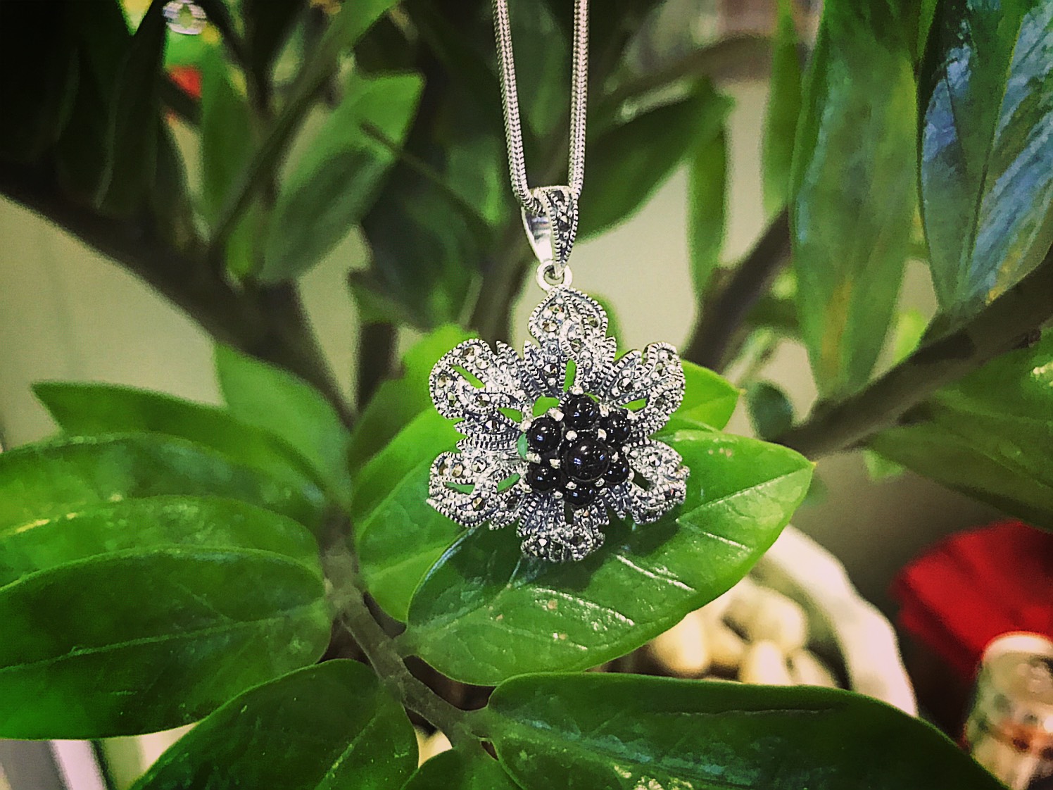 - "Chất liệu : Mặt dây chuyền bạc nữ làm bằng chất liệu đá đen Onyx kết hợp với những viên đá Marcasite nhỏ - đá núi lửa ở Srilanca. Mặt dây chuyền bạc nữ làm từ bạc nguyên chất 92.5% có phiếu kiểm định bằng MÁY PHỔ KẾ ( nếu khách hàng yêu cầu ). #Đặt hàng : 0243.9264496 -0979.419966 #hỗ trợ online: m.me/bacsqb.vn Xuất xứ : Mặt dây chuyền bạc nữ được nhập khẩu trực tiếp từ Thái Lan Tư vấn phong thủy: Mặt dây chuyền bạc nữ có màu đá này phù hợp với những bạn mệnh Thủy (màu chính mệnh) và mệnh Mộc (màu đá có mệnh tương sinh). Hãy đeo trang sức có màu sắc phù hợp với cung Mệnh để đem lại sức khỏe, may mắn và hưng vượng cho mình nhé.Goodluck!