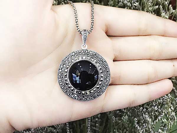 Mặt dây chuyền bạc Thái gắn đá Onyx PD-3183