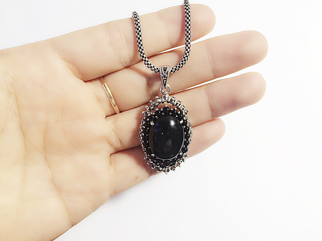 Mặt dây chuyền bạc Thái gắn đá Onyx PD-3183