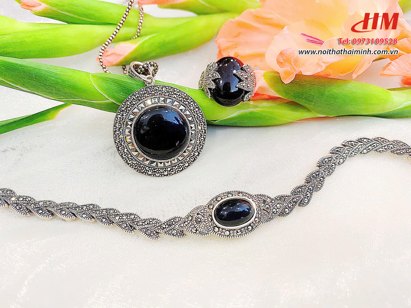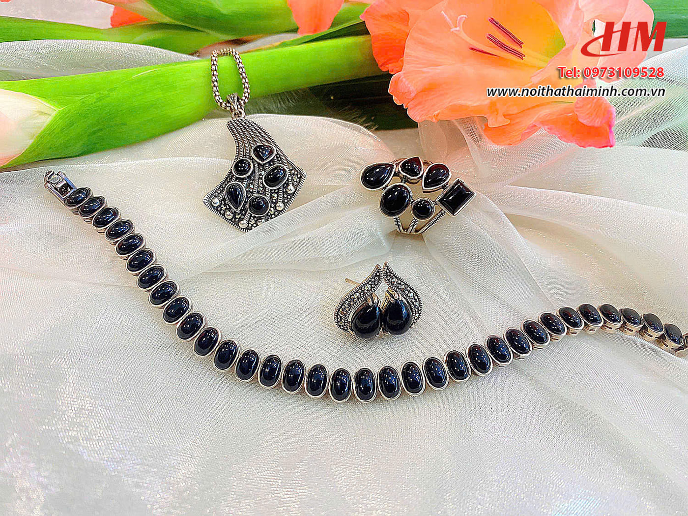 - Dây chuyền bạc Thái mặt đá tự nhiên