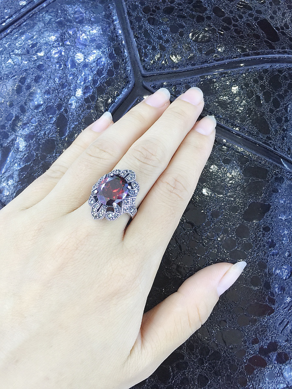 - Chất liệu : Nhẫn bạc nữ đá đỏ Ganet kết hợp với những viên đá Marcasite nhỏ - đá núi lửa ở Srilanca. Nhẫn bạc nữ làm từ bạc nguyên chất 92.5% có phiếu kiểm định bằng MÁY PHỔ KẾ ( nếu khách hàng yêu cầu ). Nhẫn bạc nữ được điều chỉnh size theo tay của khách hàng