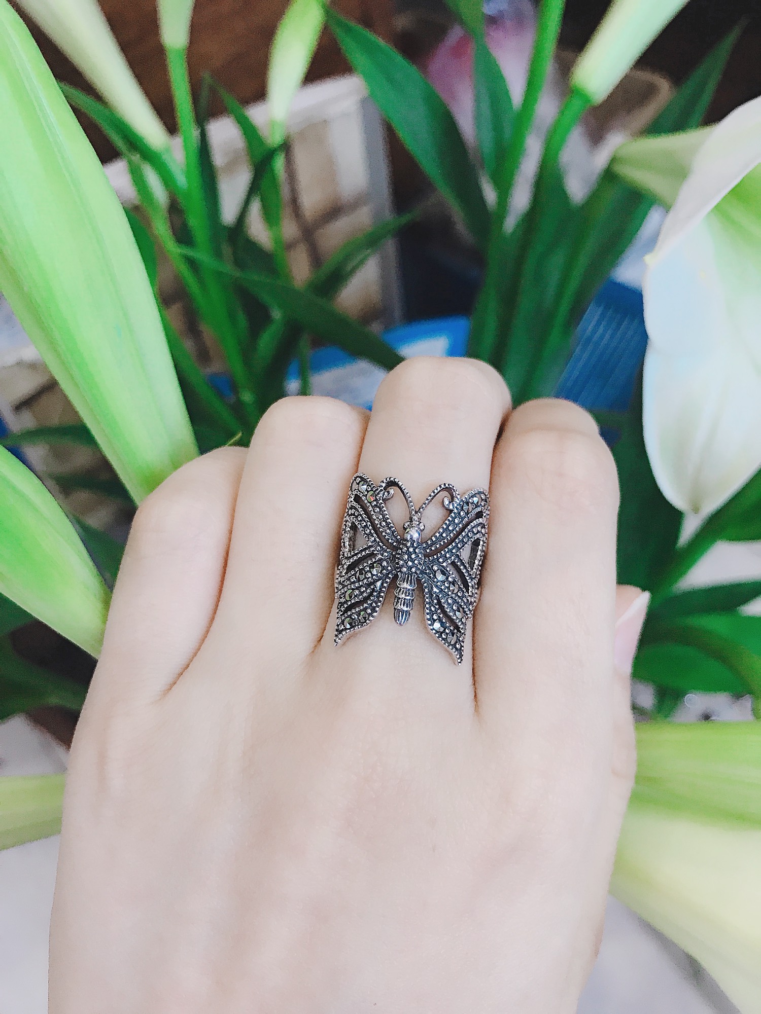 Nhẫn bạc nữ hình bướm đính đá nghệ thuật Thái Lan