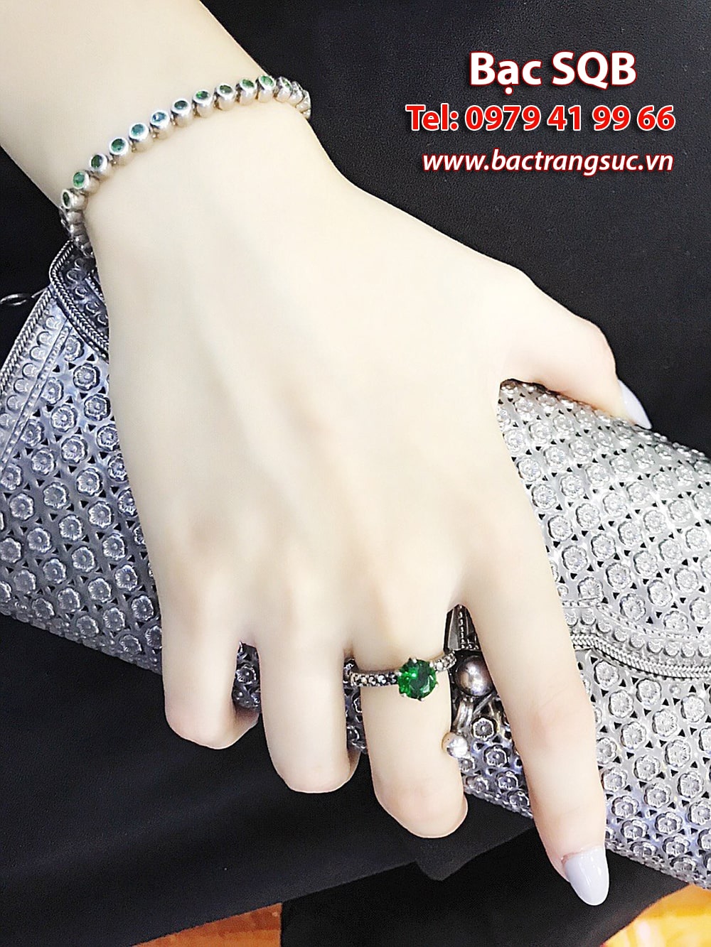 Nhẫn bạc và vòng tay bạc đính đá đẹp tinh tế quyến rũ - Trang sức bạc SQB