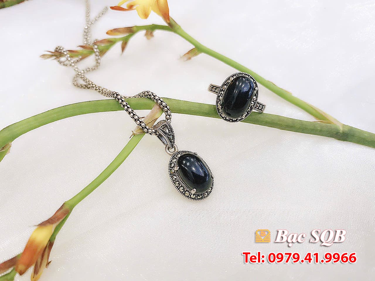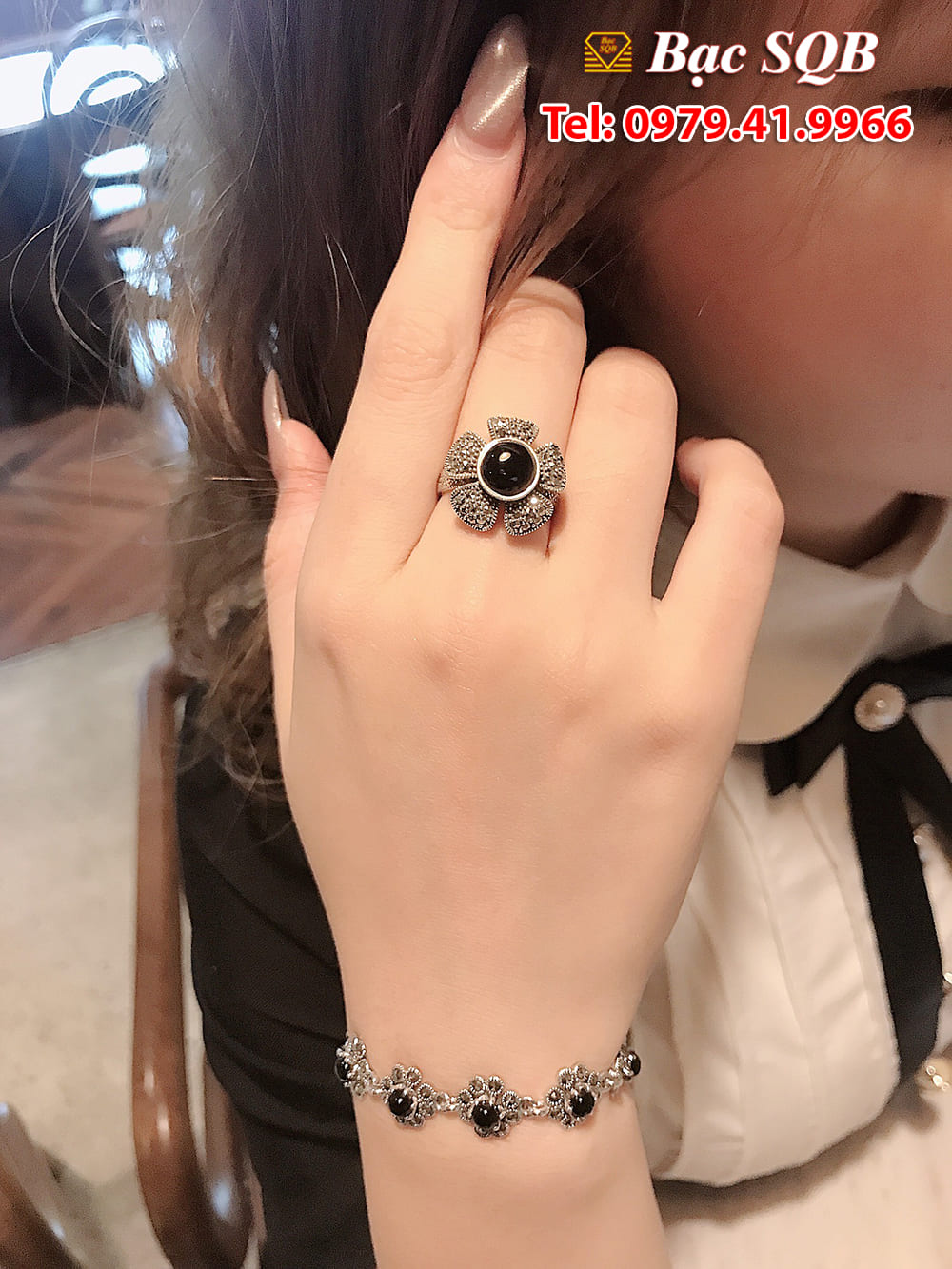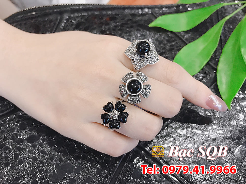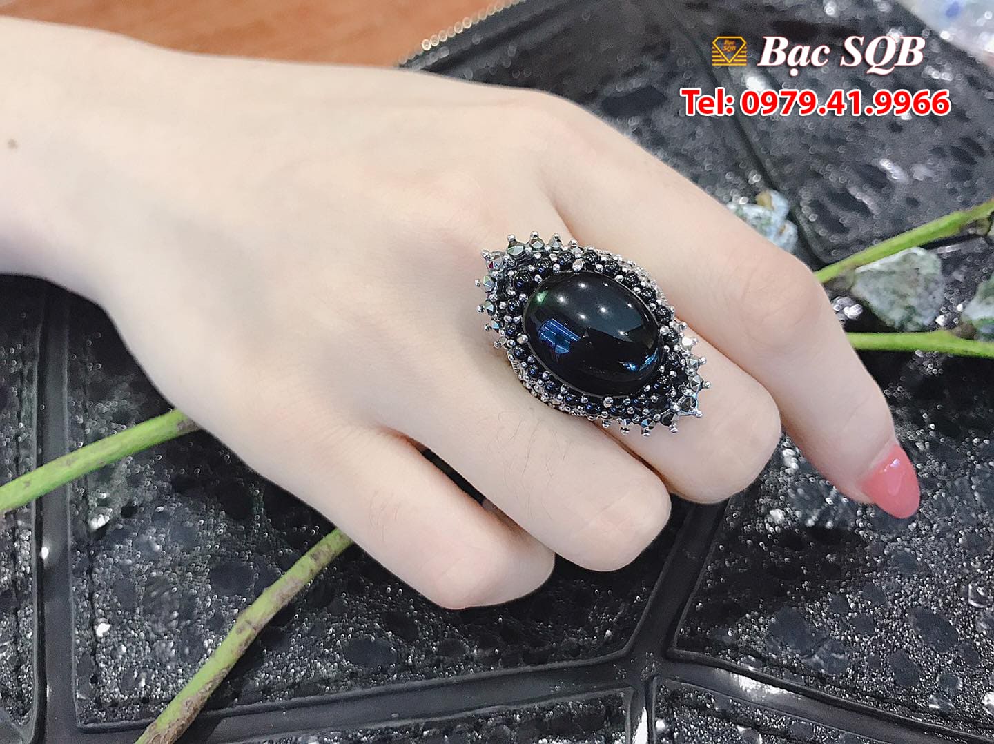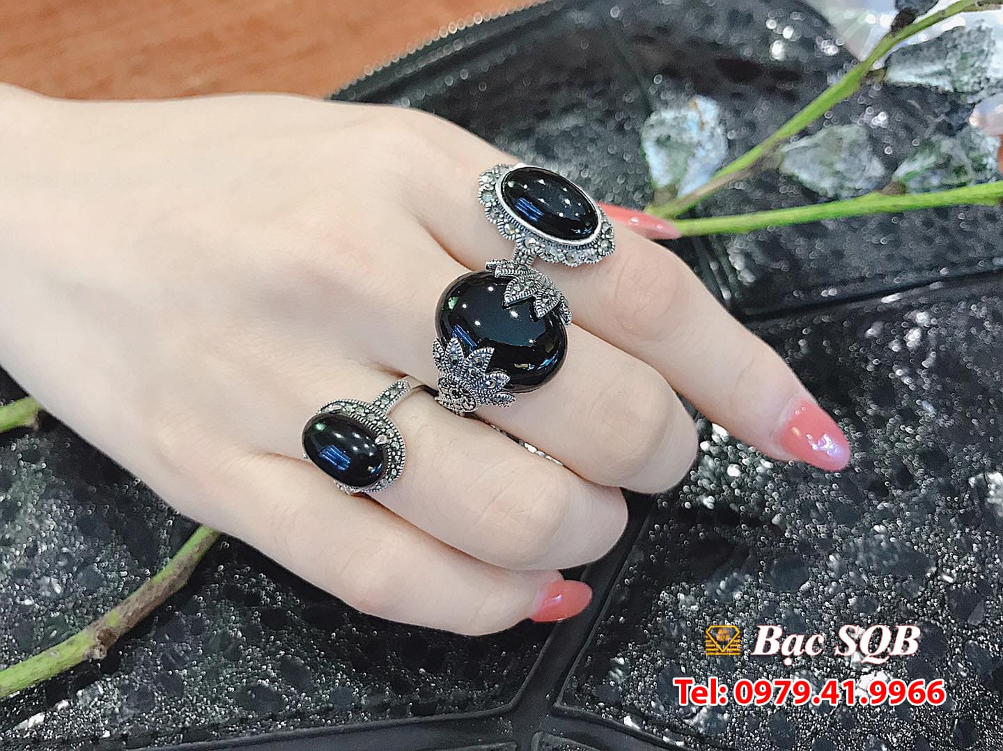 Nhẫn bạc Thái đính đá đen: tạo điểm nhấn cá tính, mạnh mẽ và sang trọng.