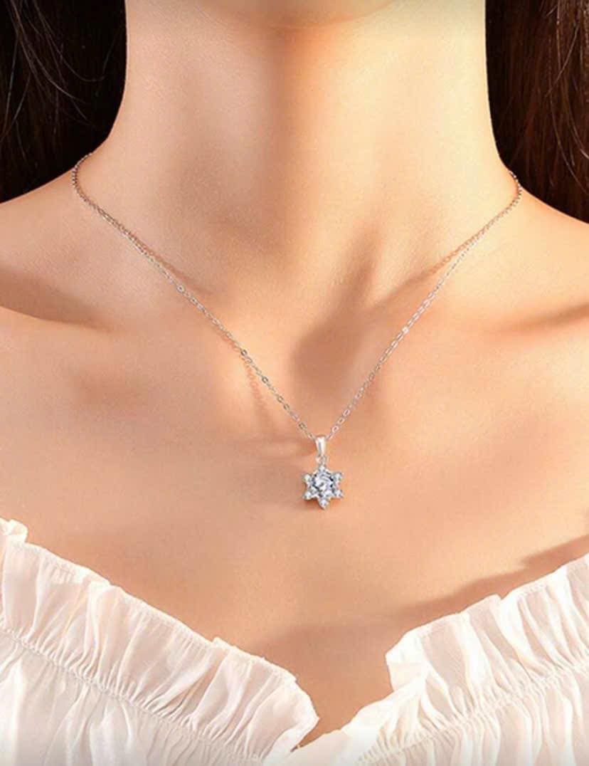 Một dây chuyền Moissanite với viên đá sáng lấp lánh giữa cổ sẽ giúp người phụ nữ trở nên cuốn hút và tự tin hơn bao giờ hết.